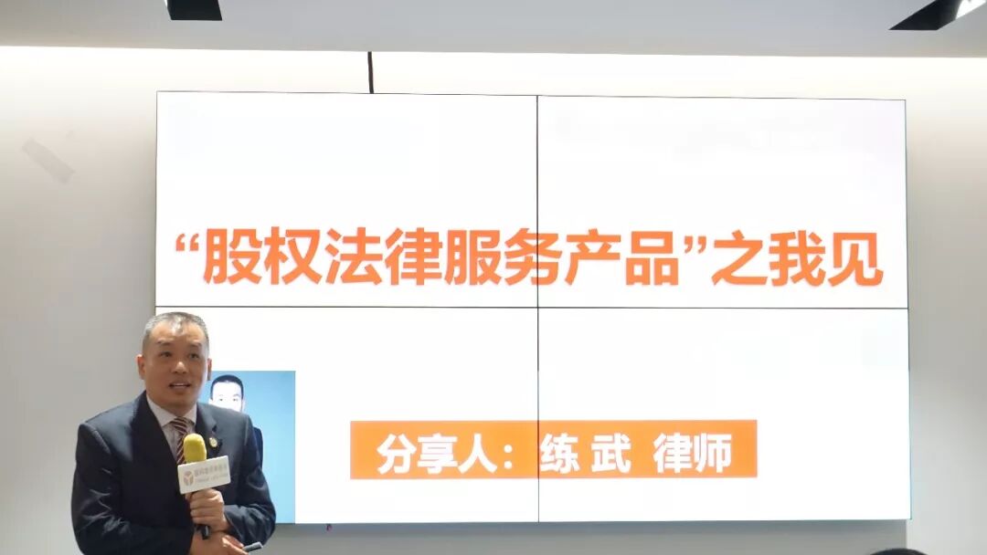 首先,练武律师带来了【股权法律服务产品之我见】的专题分享。练律师幽默风趣地进行了自我介绍,循序渐进地为大家阐述了律师专业化的必要性,强调了法律服务产品的可视化、可预期、可监督性以及对服务过程的重视。在股权业务领域日益扩大、律师行业竞争愈发激烈的背景下,实行专业化是时代的需要,也是客户的需要。